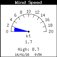 | Velocidad de viento máxima | 8.7 kt a 7:51 |